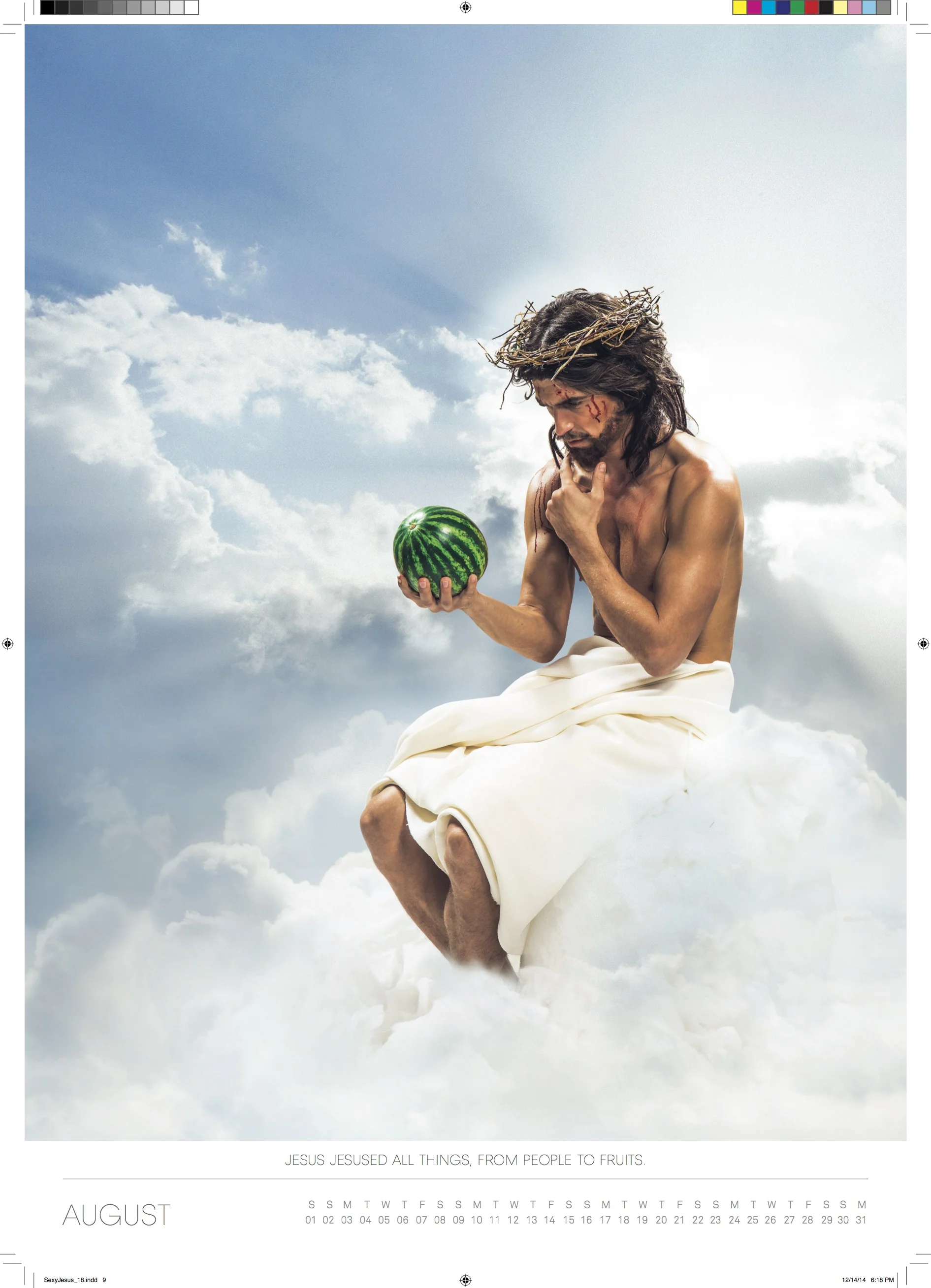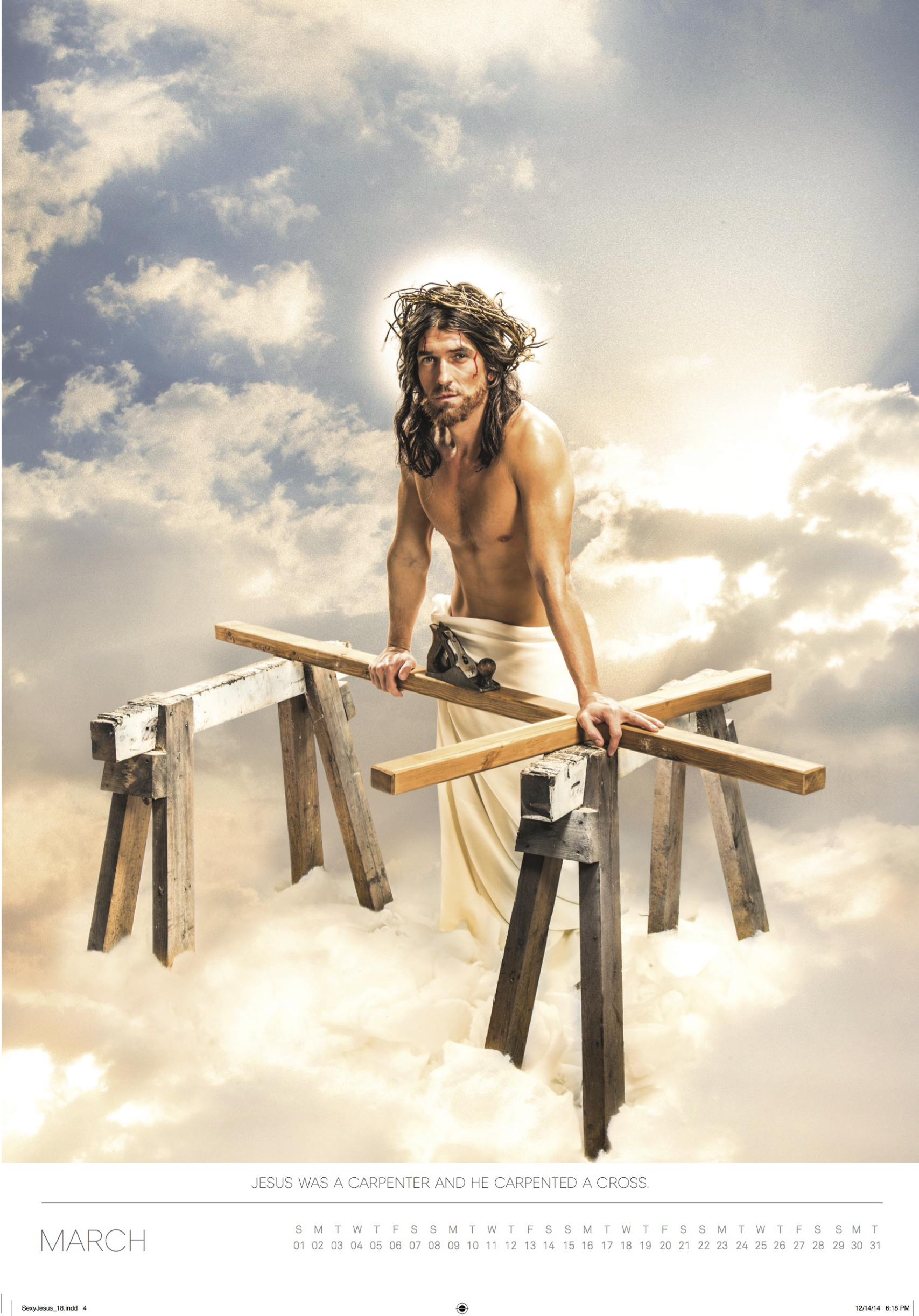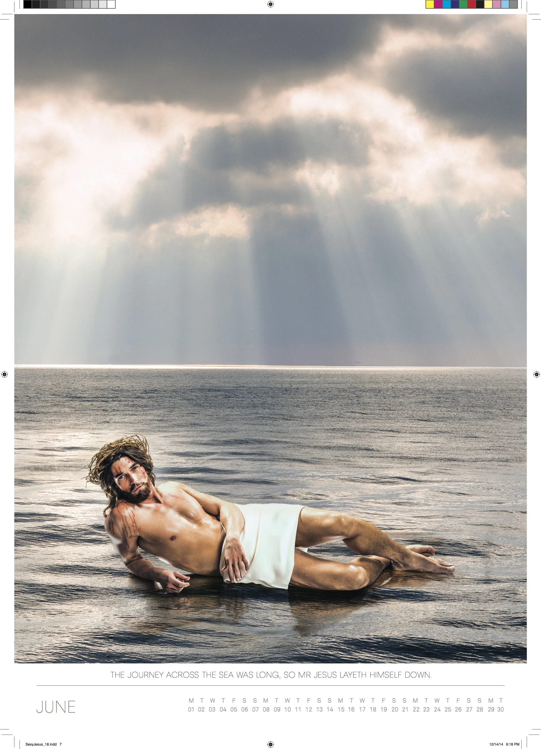 This is a Sexy Jesus calendar I made with Anomaly London. It served as the agency 2014 Christmas card. One day a Jehovah's Witness put a leaflet through my door. It featured illustrations of Christ with a modern haircut and a six-pack, hanging out with people of all races, plus a moose and a puma. The reverse of the leaflet showed Christ on the cross with bulging man-pecks and a faraway stare. That's where the idea came from. Photography by the excellent Oli Kellet.