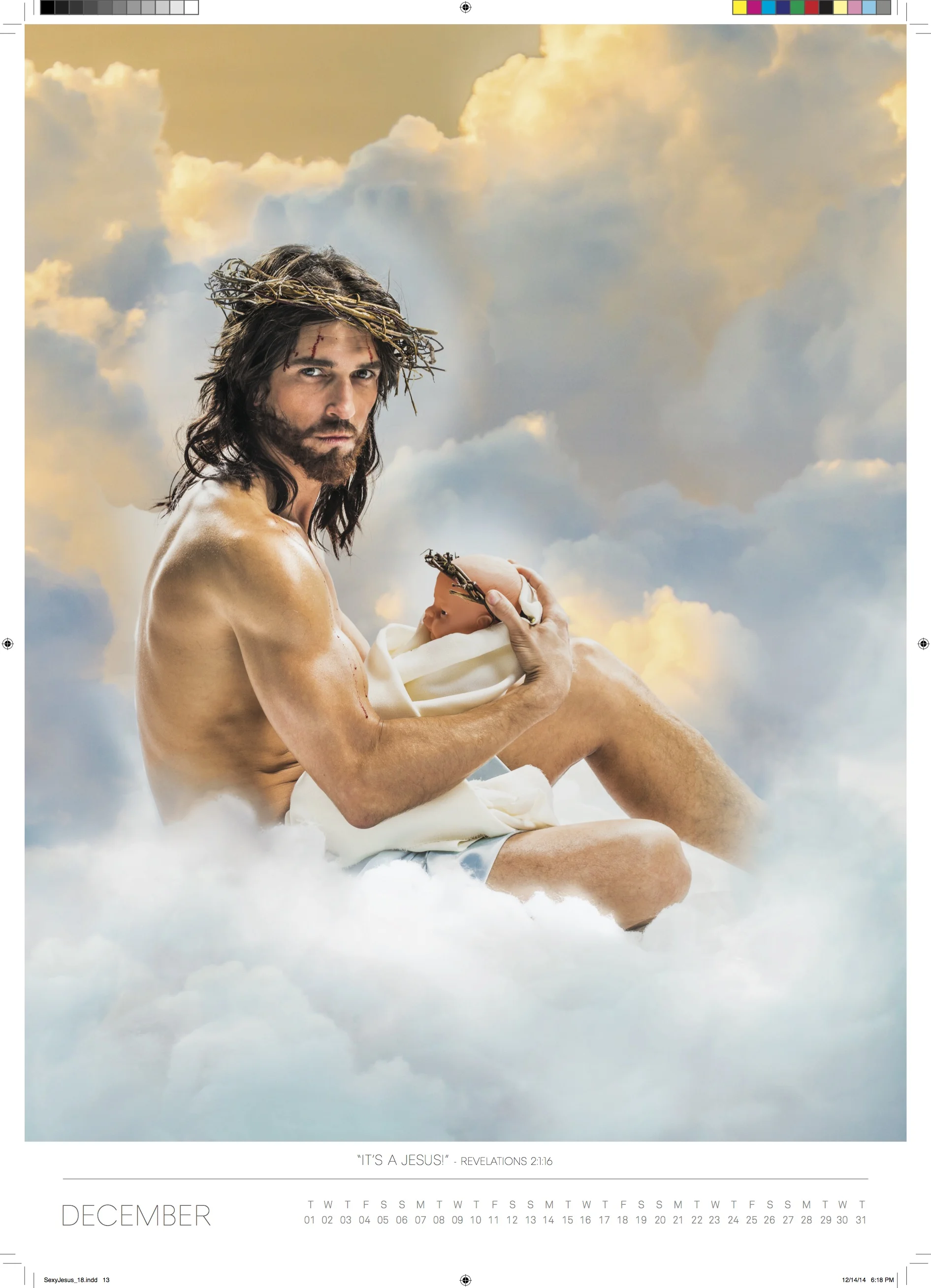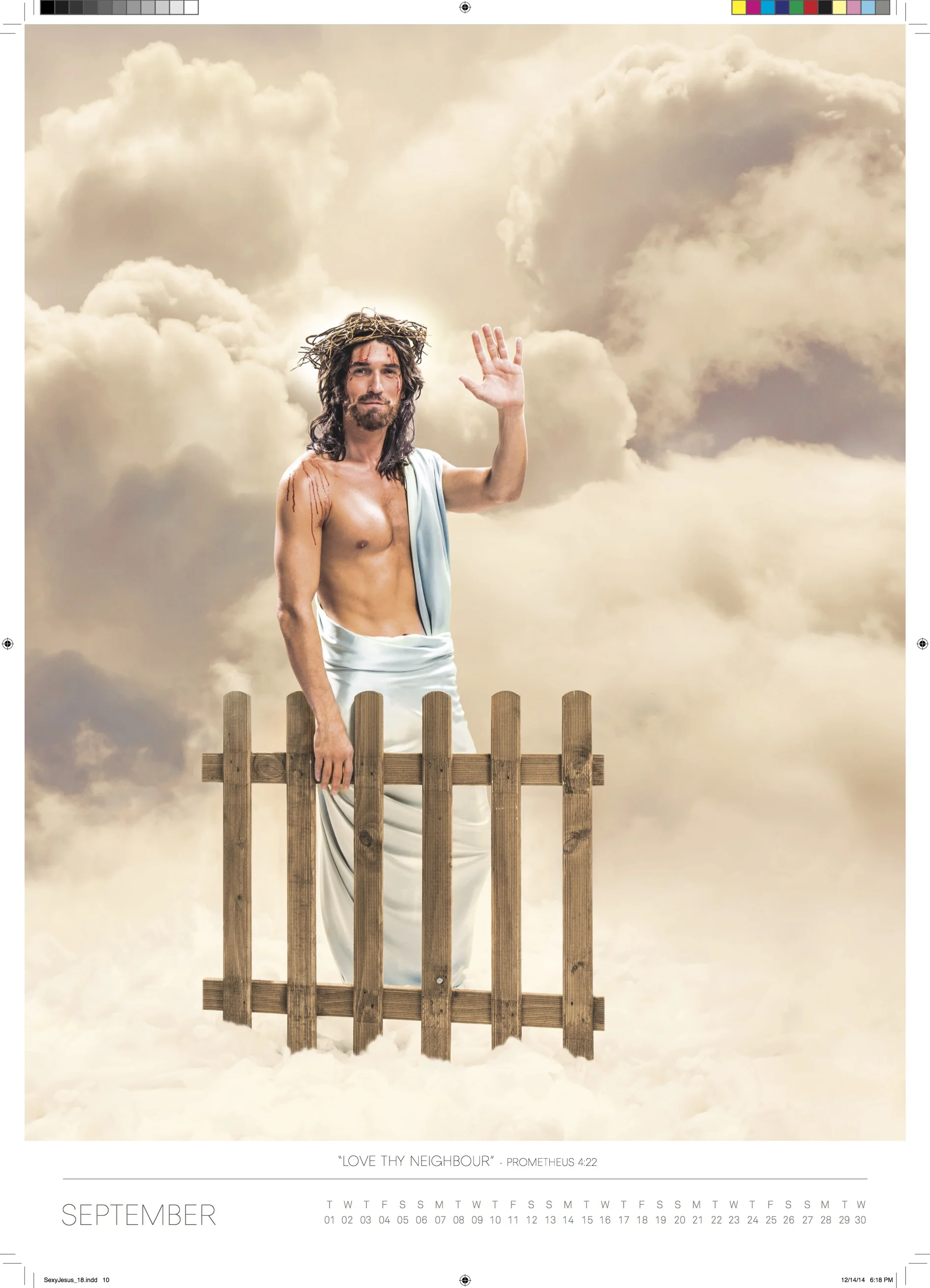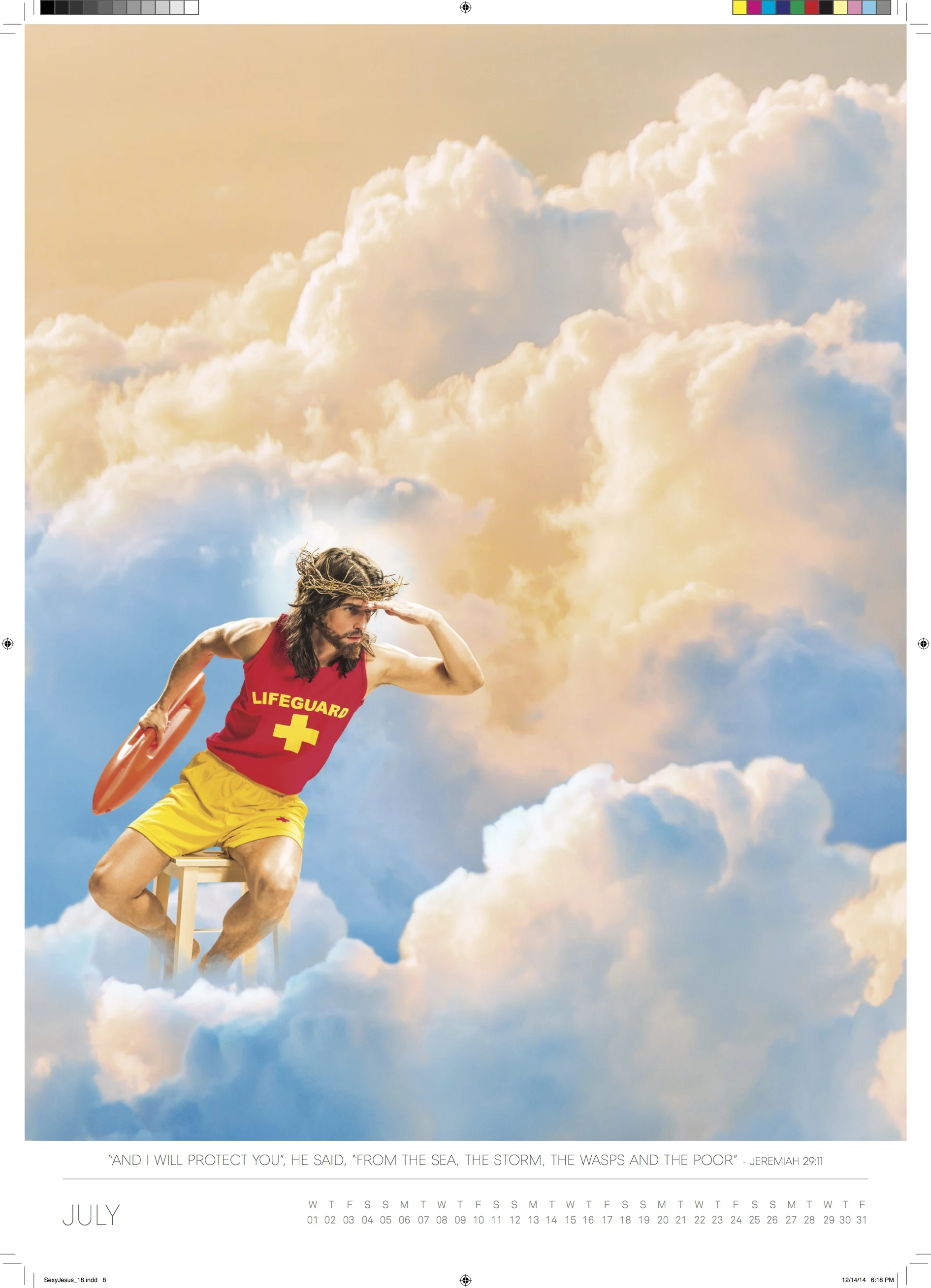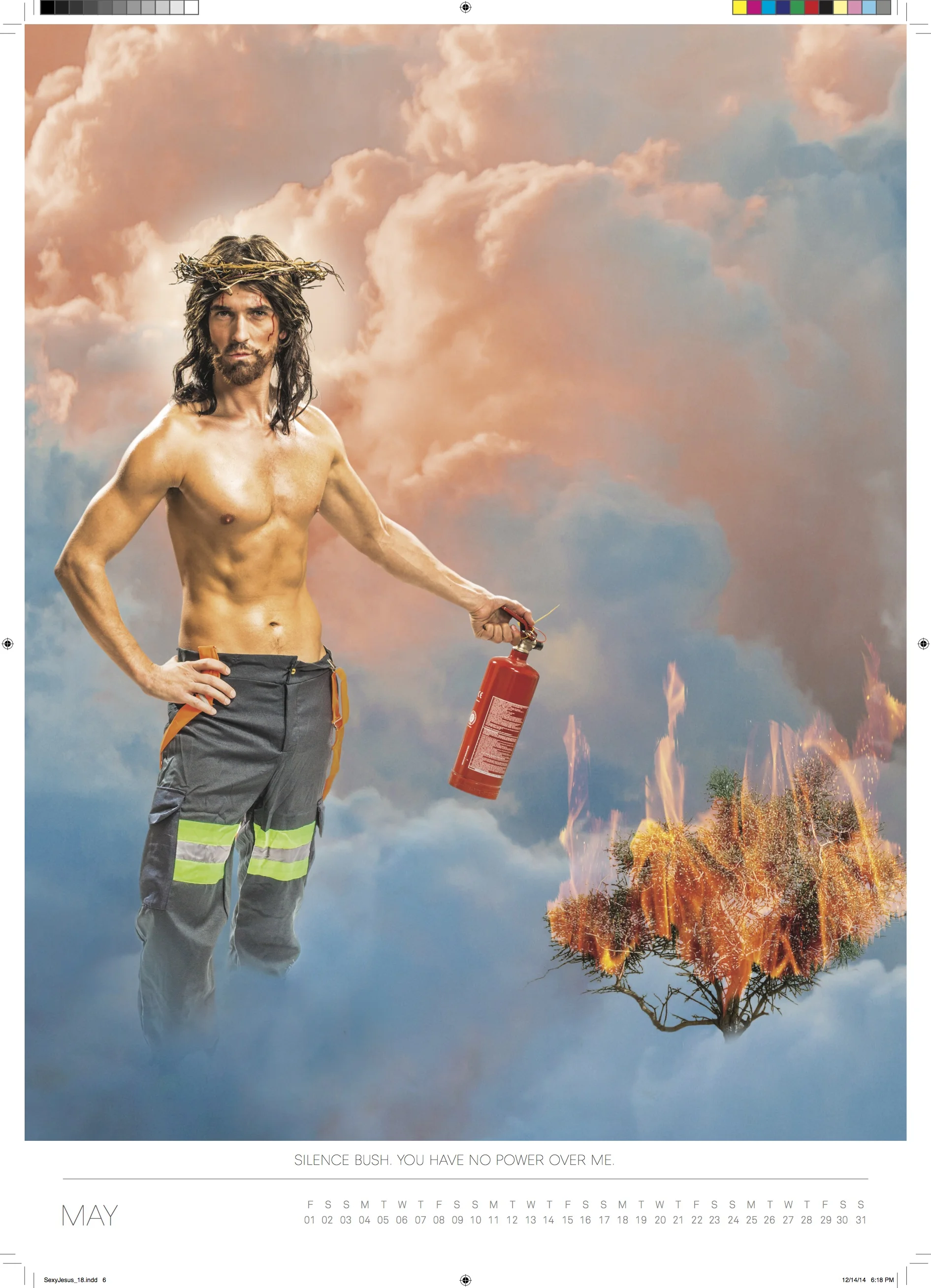 This is a Sexy Jesus calendar I made with Anomaly London. It served as the agency 2014 Christmas card. One day a Jehovah's Witness put a leaflet through my door. It featured illustrations of Christ with a modern haircut and a six-pack, hanging out with people of all races, plus a moose and a puma. The reverse of the leaflet showed Christ on the cross with bulging man-pecks and a faraway stare. That's where the idea came from. Photography by the excellent Oli Kellet.